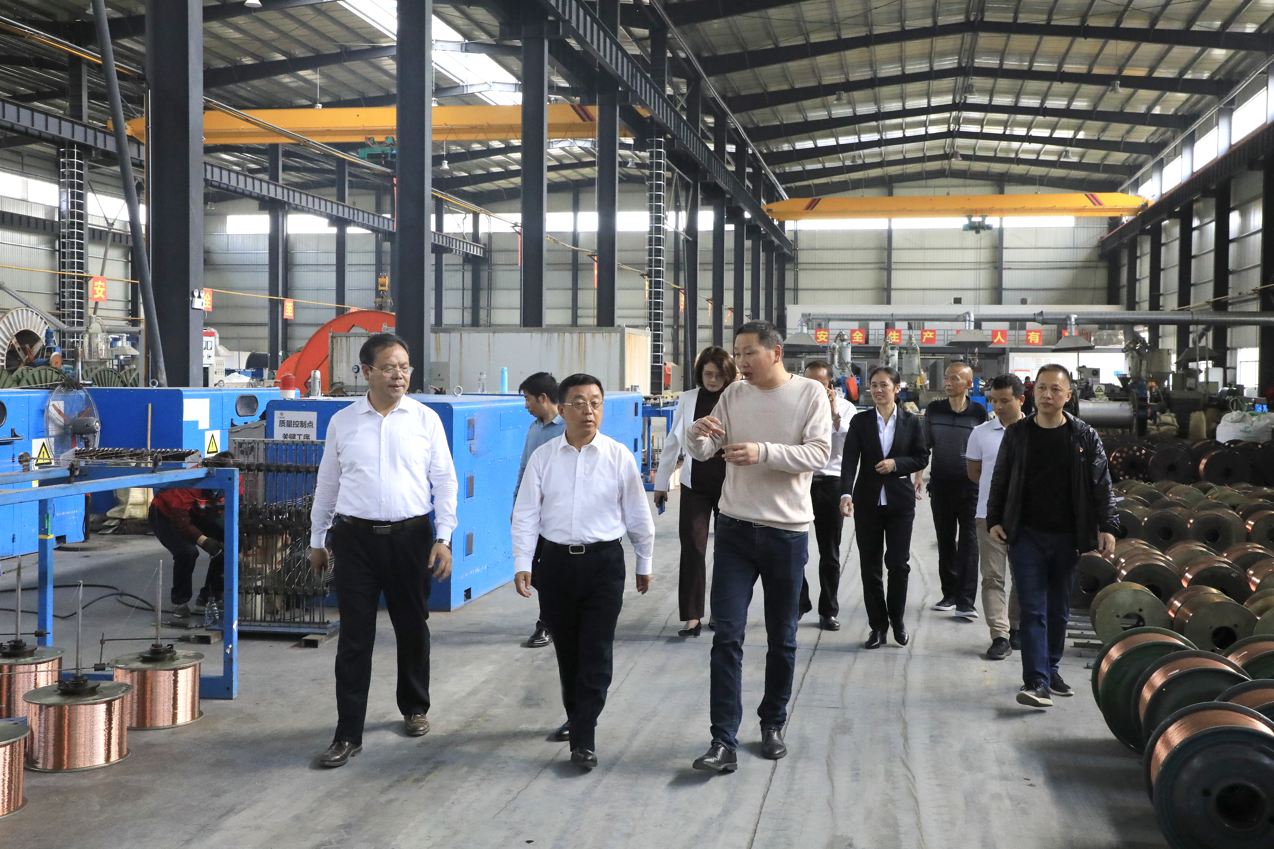 2020年11月18日,永州市副市長劉衛華與永州經開區黨委書記高守凱,和經開區管委會李瑛主任等一行人,蒞臨三湘電纜調研經濟發展情況,三湘電纜董事長申旺與總經理宮少華等熱情接待并陪同調研。